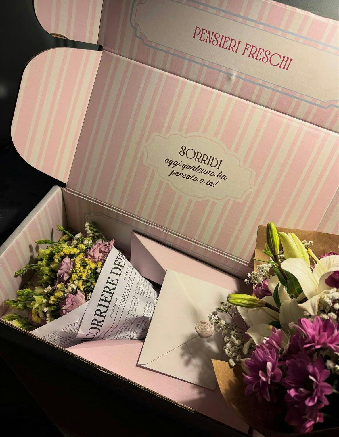 Il lisianthus è un piccolo capolavoro: sembra una rosa vestita per una festa elegante. Con i suoi petali morbidi e e gli steli sottili, porta un po' di magia in ogni angolo. Non sai mai quale colore arriverà, ma ogni sfumatura è una sorpresa bellissima. Insieme allo Statice, il nostro fiore "eterno", dai petali leggeri come carta, crea un Pensiero Fresco capace di far sbocciare un sorriso. Sempre.