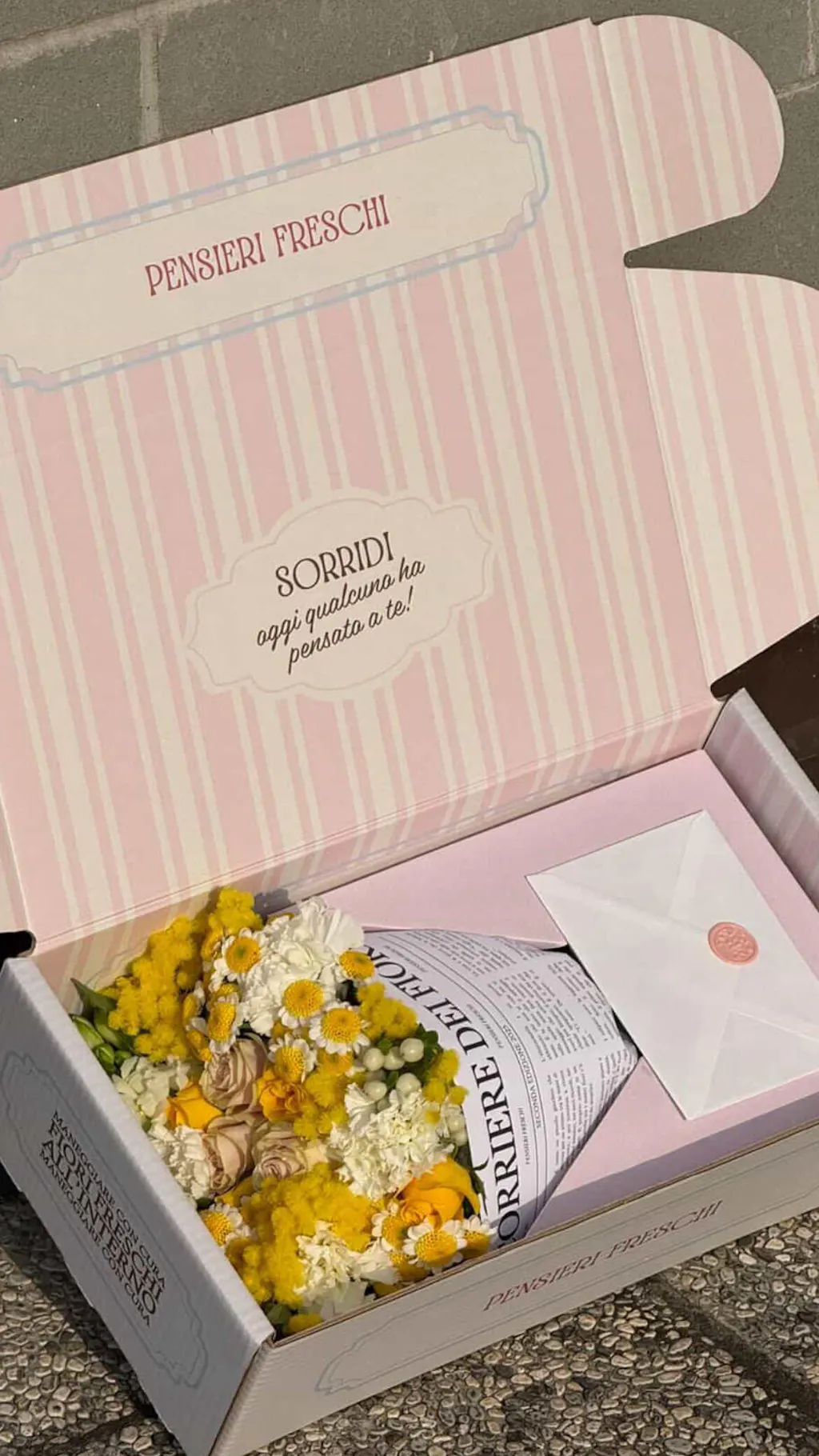 Questo bouquet è creato a mano con i fiori più freschi, confezionato nella nostra classica scatola di Pensieri Freschi e accompagnato da una delle nostre cartoline personalizzabili. Adatto a ogni occasione, Il Pensiero elimina ogni incertezza. Non c'è bisogno di pensare a quali fiori scegliere o se il regalo sarà gradito, perché è progettato per emozionare e sorprendere, facendo sentire speciale chi lo riceve, senza complicazioni.
